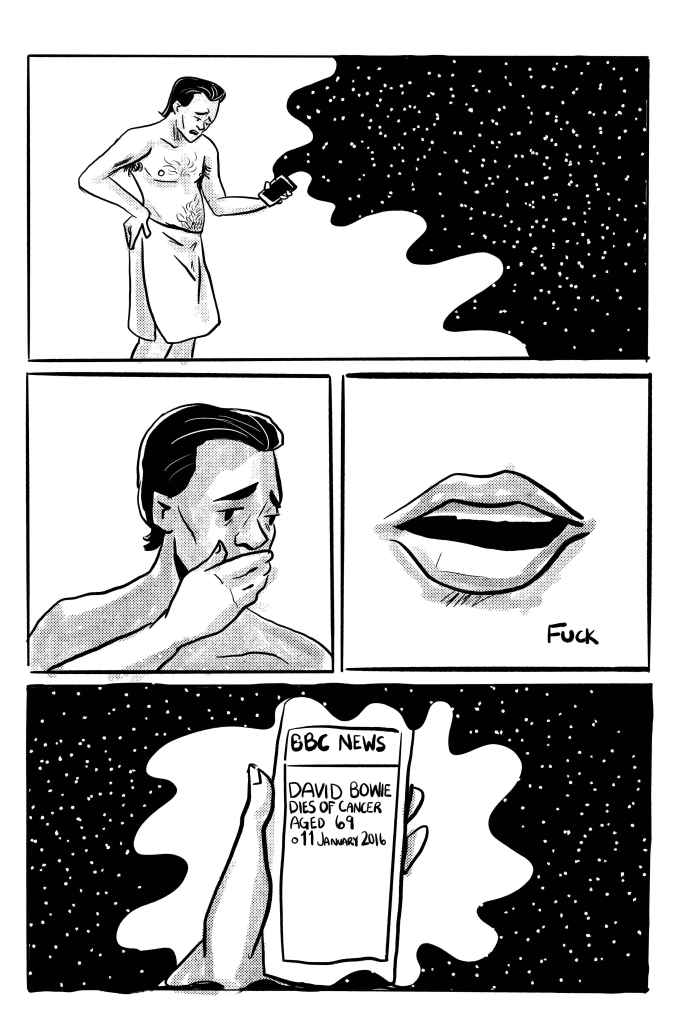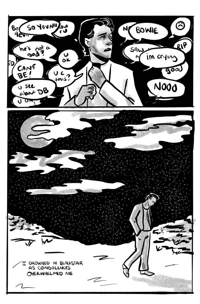 In 2018, I released my first solo anthology, “Hallo Spaceboy,” to rave reviews. Now, six years later, I’m revisiting the book with a Remastered and Expanded edition. This comic, Blackstar, initially closed out the collection of three personal memoir comics inspired by David Bowie.