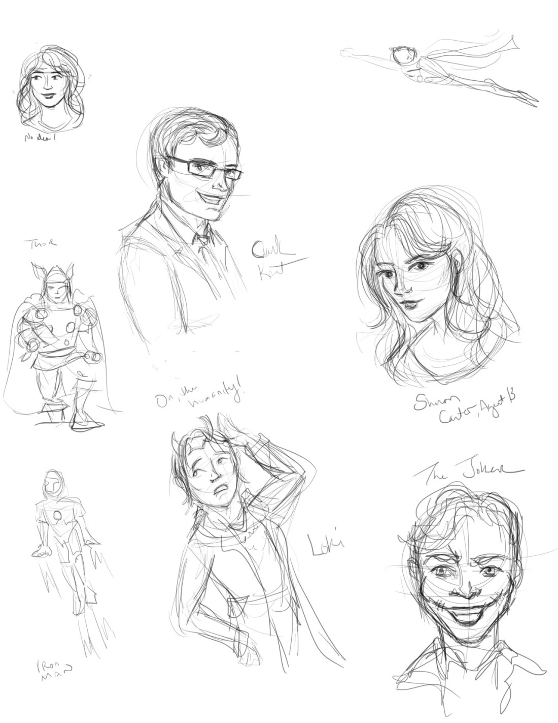 Random sketches of Marvel & DC characters. Mostly Marvel, as I read very very very little DC. Probably missing out a lot.